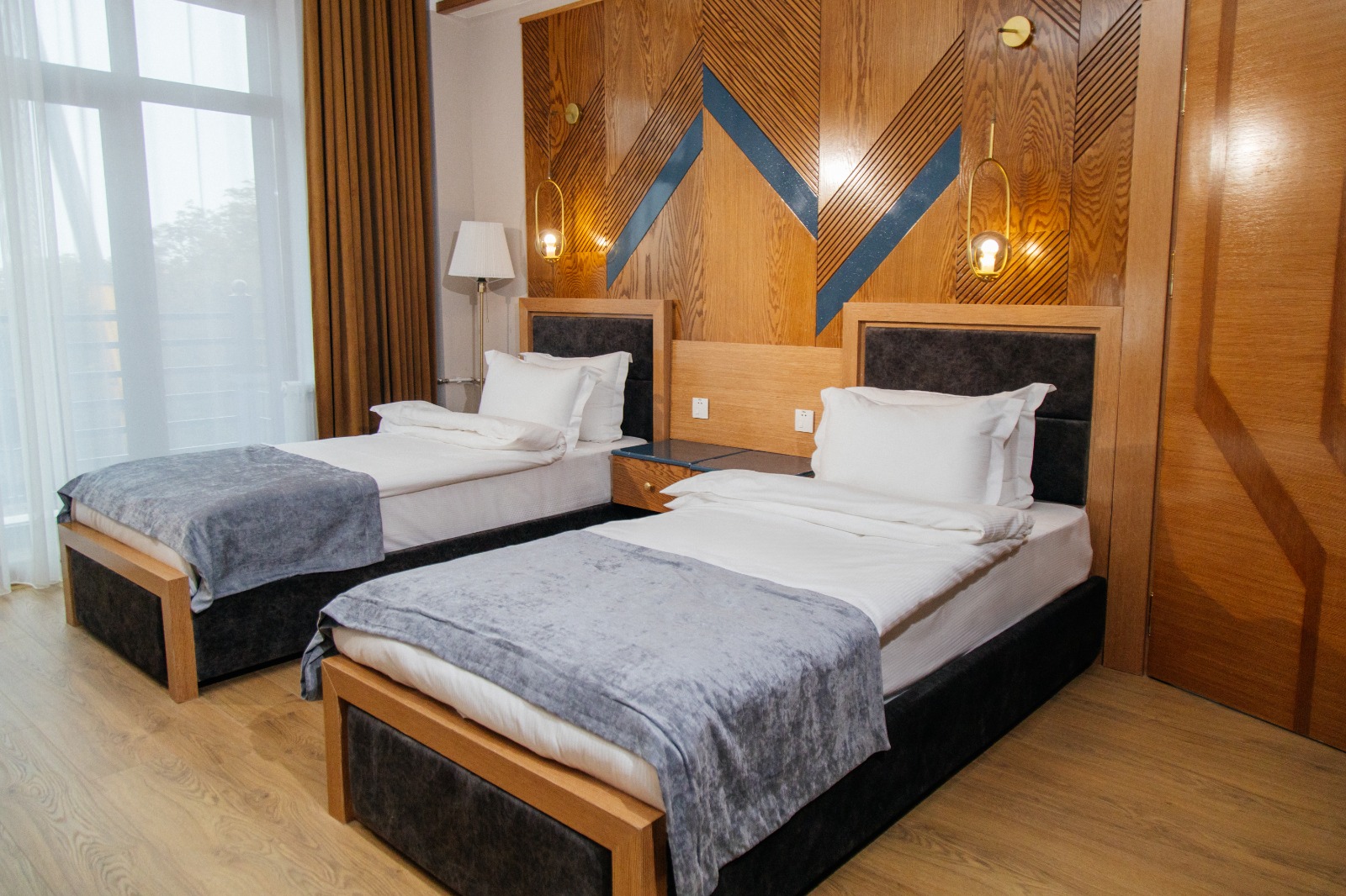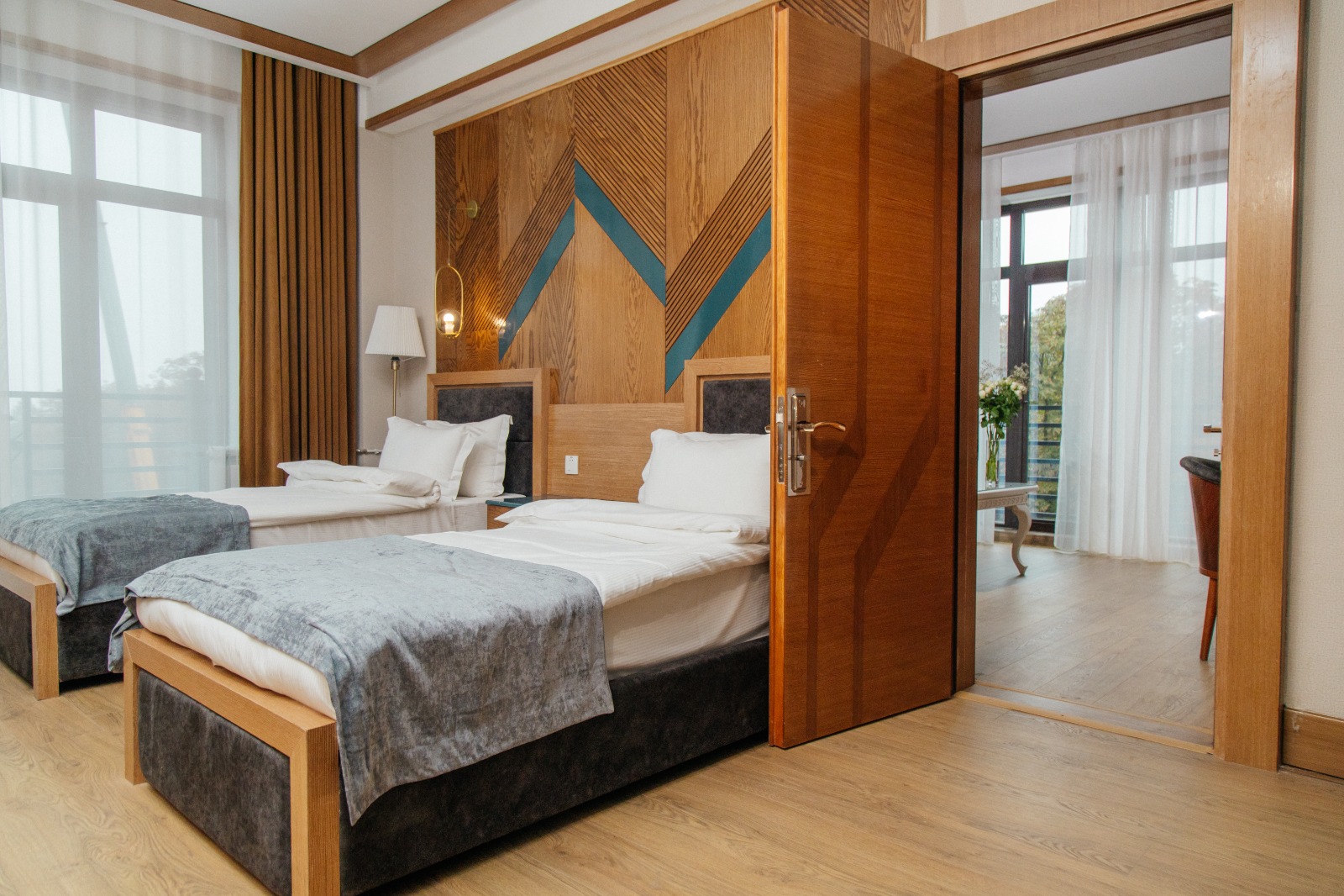 В одной из комнат вас ожидает большая кровать king-size, а в другой — две односпальные кровати. Современная мебель и продуманный интерьер помогут вам насладиться тишиной и спокойствием, которое дарит пребывание в нашем санатории.